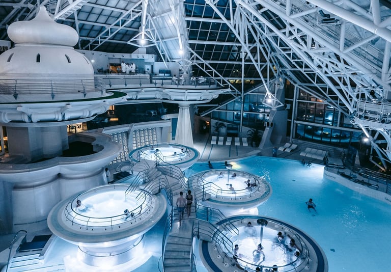 Una visita imprencindible en Andorra. Caldea es el centro termal más grande del sur de Europa con impresionantes vistas a las montañas. Su amplia oferta incluye piscinas interiores y exteriores, jacuzzis, baños de vapor, saunas. Hay espacios para toda la familia y zonas exclusivas para adultos.